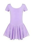 PLIKSUVER Girls Ballet Dress Short Sleeve Ballet Outfit Gymnastics Dance Leotard with Chiffon Skirt