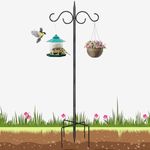 Bird Feeder Poles and Hangers, 2M Heavy Duty Bird Feeding Hanging Station Stand with base, Double Shepherds Crook Hooks FreeStanding for Outdoors Lantern Garden Lights Flower Basket, Black,1 Pack