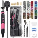 Windspeed Upgrade Hotfix Rhinestone Applicator Tool, Rapid-Heating Hot Fix Rhinestone Setter for Bedazzler Kit Hotfix Applicator for Crafts, 15 Color Rhinestones/ 7 Tips/Tweezers/Pencil/Brush (Pink)