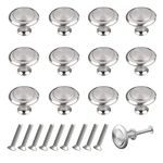 Cabinet Knob Round Door Knobs Mushroom Shape Pull Handle with Screws for Cabinet Wardrobe Drawer Cupboard 12 Pieces Silver Brushed
