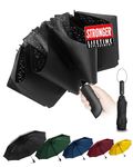 LAMA Folding Umbrella, Inverted Umbrella Windproof Strong, Auto Open/Close, Anti-UV, Compact, Portable Travel Umbrella with LED Light and Reflective Stripes for Rain Sun, Black+LED