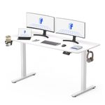 SANODESK QS1+140 * 60 Electric Standing Desk Height Adjustable Standing Desk With Memory Smart Panel Sit Stand Table With Hooks and Cupholder for Home Office (White Frame+ White Desktop)