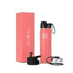 IRON °FLASK Sports Water Bottle - 650 ml, 3 Lids (Straw Lid), Vacuum Insulated Stainless Steel, Double Walled, Thermo Mug, Metal Canteen (Fire Red)